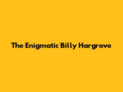 The Enigmatic Billy Hargrove