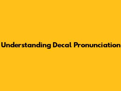 Understanding Decal Pronunciation