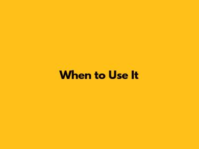 When to Use It